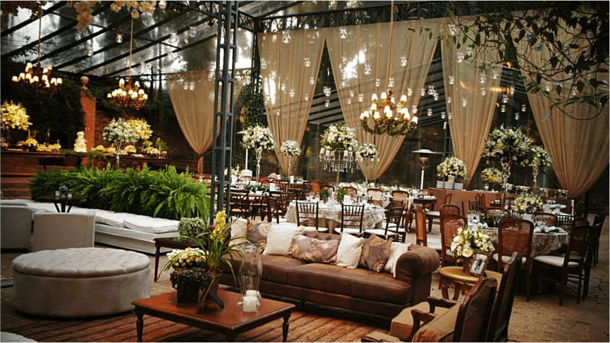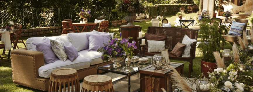 - Utilização, como item de decoração, do “Garden Seat”. O banco garden seat pode ser colocado junto à mesa de doce; junto à estande de bem casados; na mesa de café; na área de fumantes. A colocação de unidades de garden seat confere leveza e descontração à decoração;