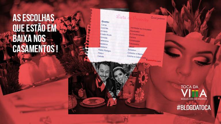 Então, se por um lado as inspirações vão ajudar na escolha do que se quer, saber o que está em baixa pode ajudar a determinar o que não se quer. Claro que estar em baixa não significa que você não possa colocar no seu casamento. É apenas uma, das muitas referências que existem. E, evidente, você pode adotar ou não estas referências.