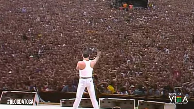 Aqui, uma das estrelas do Live Aid, o incomparável Queen.